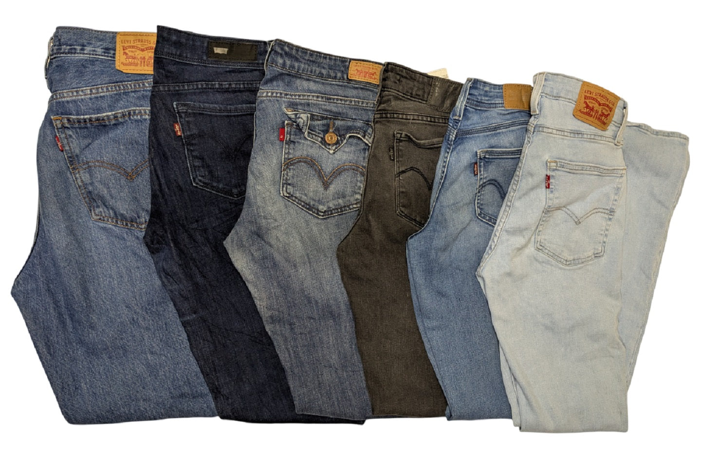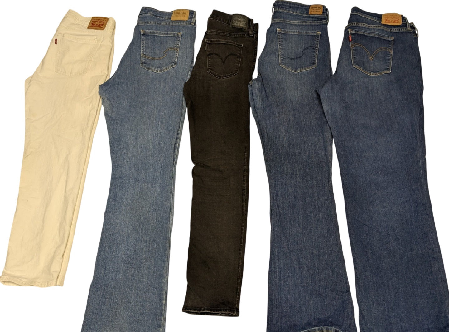 Photos are included of what a typical Recycle Ladies Levis looks like. The items shown in these photos are not the items you will be receiving. You will be receiving similar items.