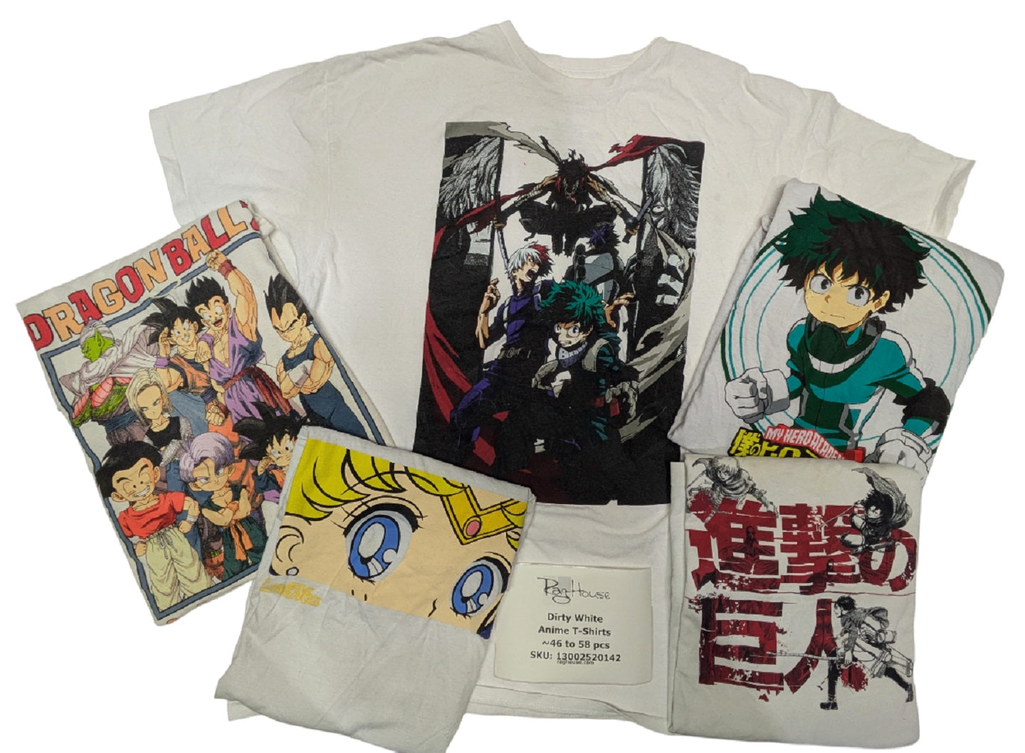 Dirty White Anime T-Shirts ~46 to 58 pcs
