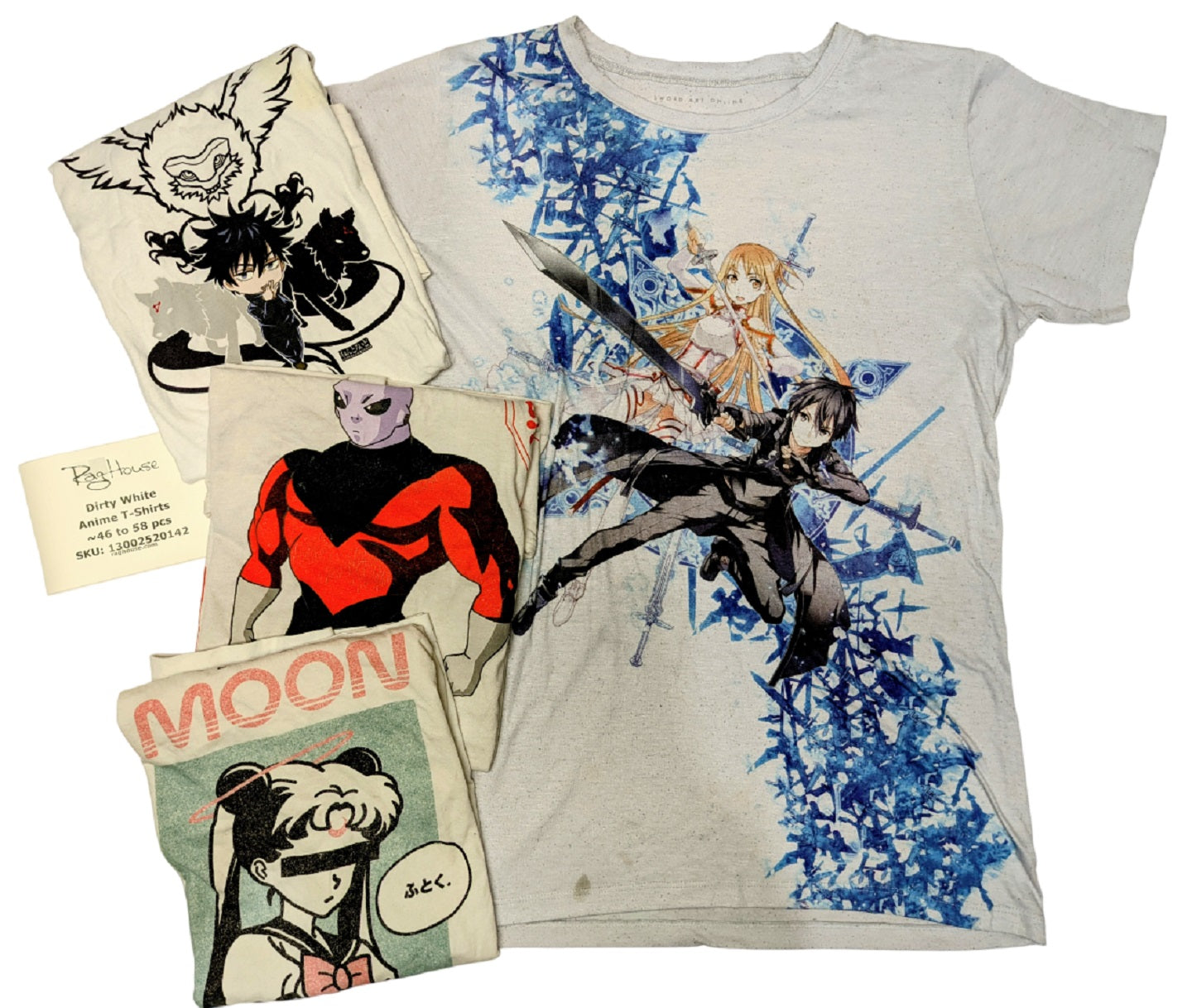 Photos are included of what a typical Dirty White Anime T-Shirts looks like. The items shown in these photos are not the items you will be receiving. You will be receiving similar items.